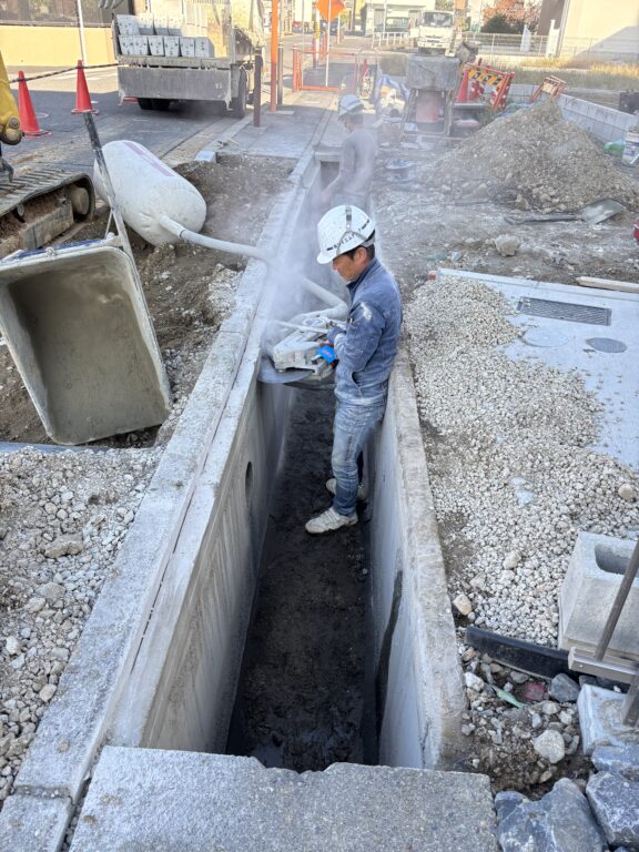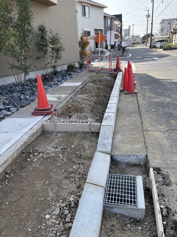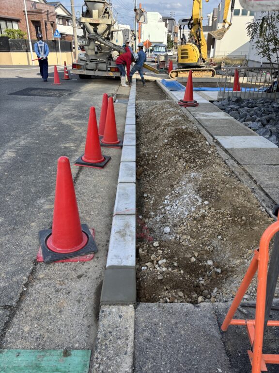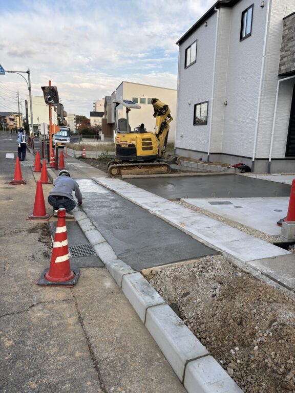 造成工事ブログ トップページ > 造成工事ブログ > ※愛知県 名古屋市守山区 西城 駐車場土間打ち、 乗入、浸透桝、側溝蓋填替え工事 ※愛知県 名古屋市守山区 西城 駐車場土間打ち、 乗入、浸透桝、側溝蓋填替え工事 2025.11.27 愛知県 名古屋市守山区 西城 駐車場土間打ち、乗入、浸透桝設置、側溝蓋填替え工事本工事は、新築宅地に伴う、乗入工事、側溝工事を行います。既設アスファルト撤去、既設側溝の二次製ガラ撤去、掘削、新設側溝の設置、新設アスファルト敷き、RC埋め戻し、生コン打設、越境物ハツリ、型枠工事等図面指示通り、工事を進めていきます。 工事前 工事中 工事完了 記事一覧へ戻る