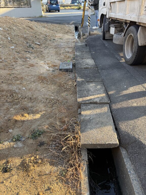 造成工事ブログ トップページ > 造成工事ブログ > ※愛知県 大府市 古川町 新築宅地造成工事+側溝入替工事 ※愛知県 大府市 古川町 新築宅地造成工事+側溝入替工事 2026.2.4 愛知県 大府市 古川町 新築宅地造成工事+側溝入替工事 本工事は、新築宅地に伴う宅地造成工事、乗入口側溝入替工事を行います。残土出し(約100㎥)、既設アスファルト撤去、既設側溝の撤去、掘削、モルタル敷き、新設側溝の設置、新設アスファルト敷き、埋設物撤去などを埋設物撤去、掘削、越境物ハツリ、CBベース型枠工事、RC敷き、鉄筋組み、整地、生コン打設、ブロック積みなど、図面指示通り、工事を進めていきます。 工事前 記事一覧へ戻る