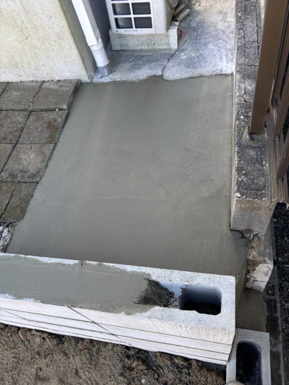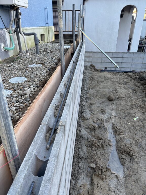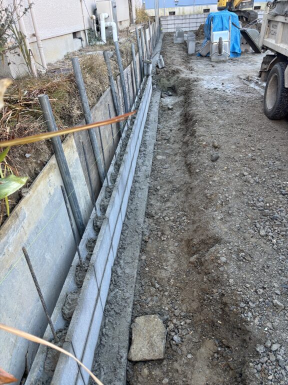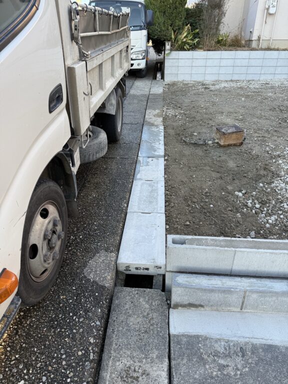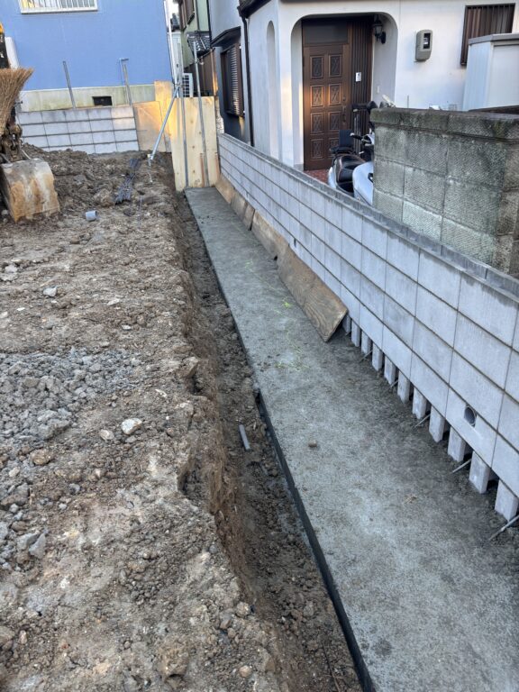 残土出し、越境物ハツリ、単管土留め、捨てコン、掘削、CP・CBベース型枠、掘削、RC敷き、鉄筋組み、整地、生コン打設、ブロック積み、側溝コン蓋設置工事など、