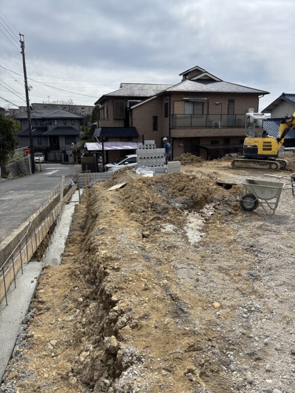 造成工事ブログ トップページ > 造成工事ブログ > 愛知県 春日井市 高森台 2区画宅地造成工事+側溝入替、グレーチング設置 愛知県 春日井市 高森台 2区画宅地造成工事+側溝入替、グレーチング設置 2026.3.14 愛知県 春日井市 高森台 2区画宅地造成+側溝入替グレーチング設置加工工事 本工事も、新築戸建て建設に伴う宅地造成工事を行います。大量残土出しを行うのに10トンダンプ、大型ユンボを現場に手配をかけ、数日かけ残土を出していき、越境物ハツリ、掘削、CBベース型枠、RC敷き、鉄筋組み、整地、生コン打設、CBブロック積み、一部側溝入替及び、グレーチング設置加工工事など、図面指示通り、工事を進めていきます。 工事前 工事中 記事一覧へ戻る
