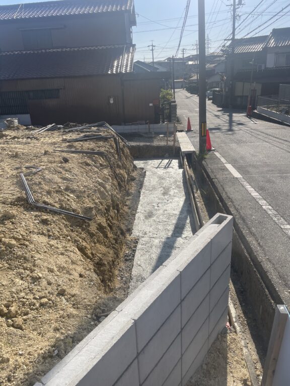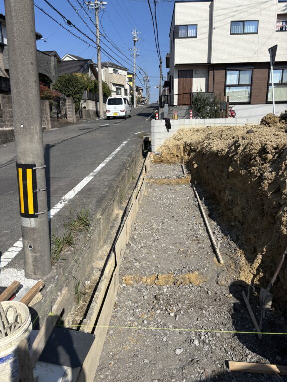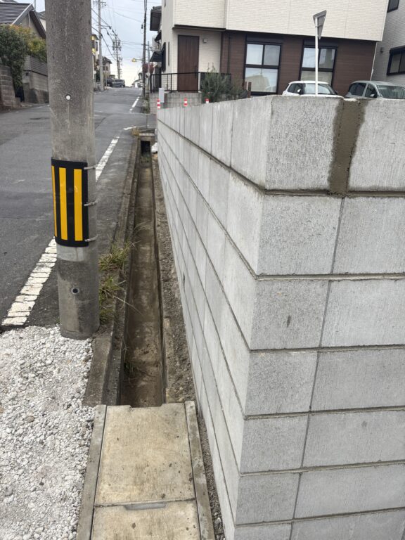 新築宅地に伴う宅地造成工事、乗入口側溝入替工事を行います。