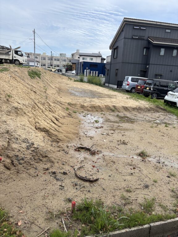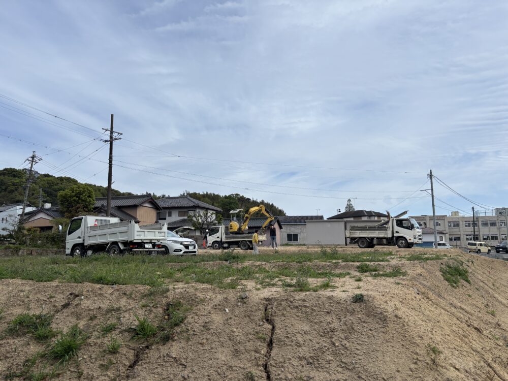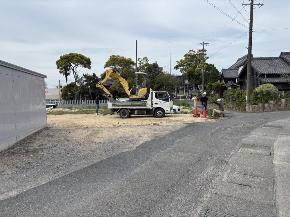 新築戸建て建設に伴う宅地造成工事及び側溝入替工事を行います。