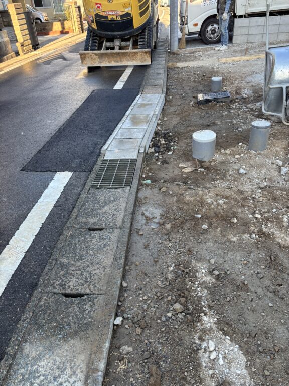 造成工事ブログ トップページ > 造成工事ブログ > ※愛知県 蒲郡市 形原町 側溝入替工事 ※愛知県 蒲郡市 形原町 側溝入替工事 2025.12.27 ※愛知県 蒲郡市 形原町 側溝入替工事 本工事は、新築宅地に伴う、電柱移設の側溝入替工事を行います。モルタル敷き、既設アスファルト撤去、既設側溝の二次製ガラ撤去、掘削、新設側溝の設置、新設アスファルト敷き、RC埋め戻し、埋設物撤去、越境物ハツリ、残土出しなど、図面指示通り、工事を進めていきます。 工事前 工事完了 記事一覧へ戻る